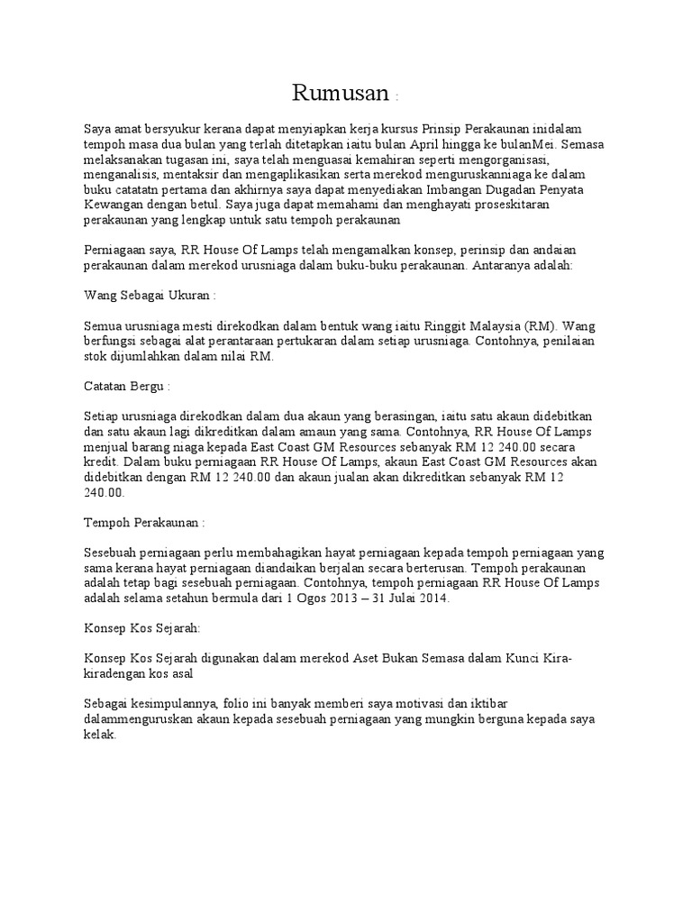 Contoh Rumusan Kerja Kursus Prinsip Perakaunan